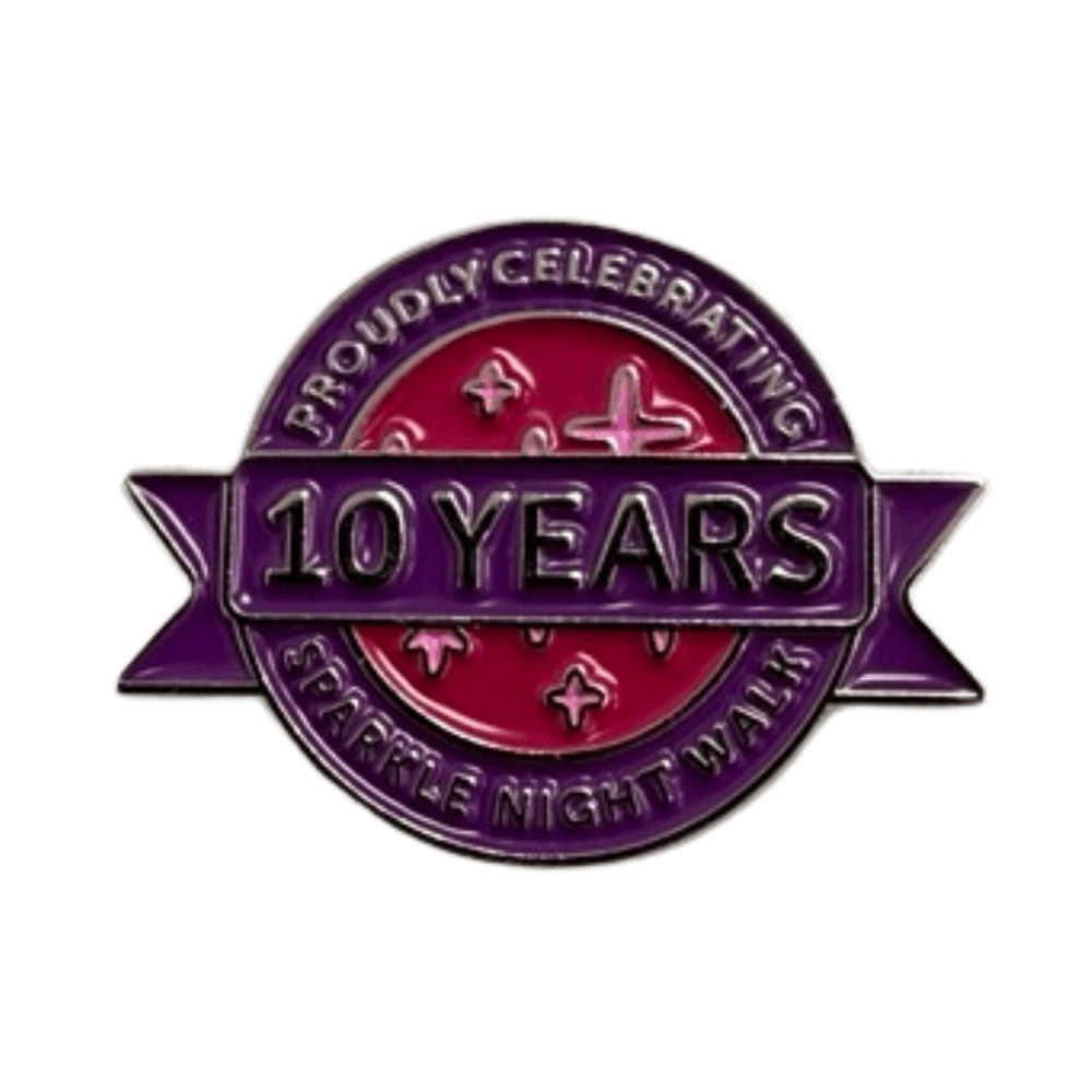 Celebrate a decade of unforgettable moments with the exclusive 10 years of sparkle pin badge. Whether you’ve been part of the journey from the start or you’re joining the Sparkle Night Walk this year, this keepsake is a perfect way to show your support.